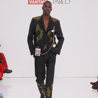 NEW YORK, NEW YORK - FEBRUARY 11: A model walks the runway wearing Yousuke Haga during the 12th NYFW AFC Runway Show on February 11, 2025 in New York City. (Photo by Zion Yoni Levy/Tals studio)